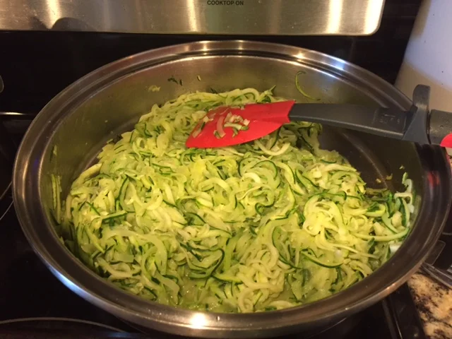 I don’t use shiitake noodles because I think they’re slimy like snot. I make zucchini noodles. I have a spiralizer from The Pampered Chef; it works well and it's easy to clean, so I'm happy. Also, the childrens can use it so that's a major plus. (Also, I usually make pasta for the childrens.)